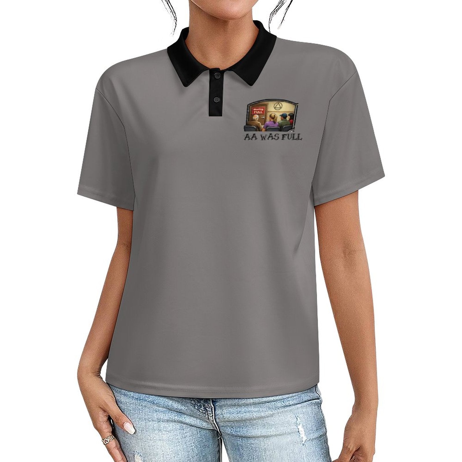 "AA Was Full" - Women’s Button-Down Polo Shirt – Short Sleeve Polyester Performance Top