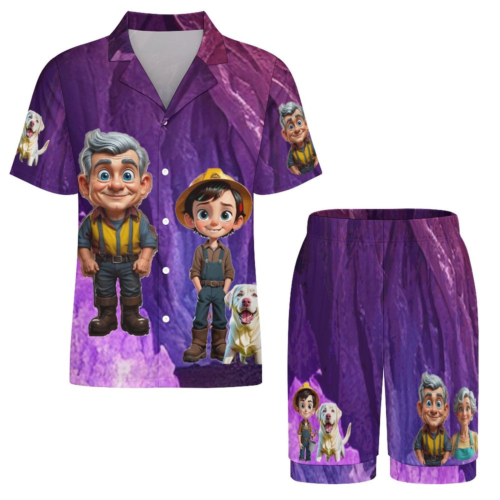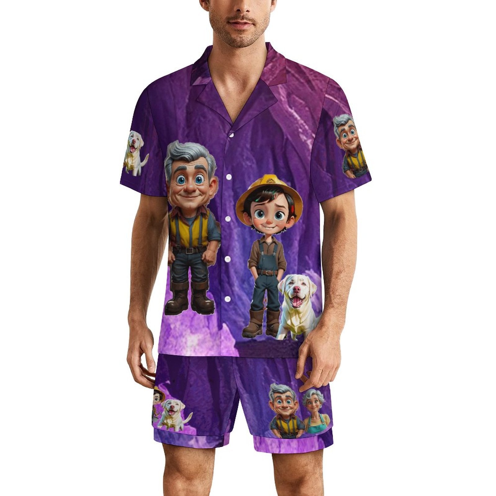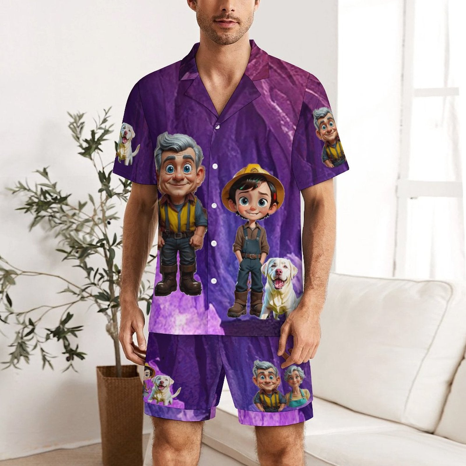 160gsm Men's Ice Silk Short Sleeve Pajama Set(All-Over Printing)