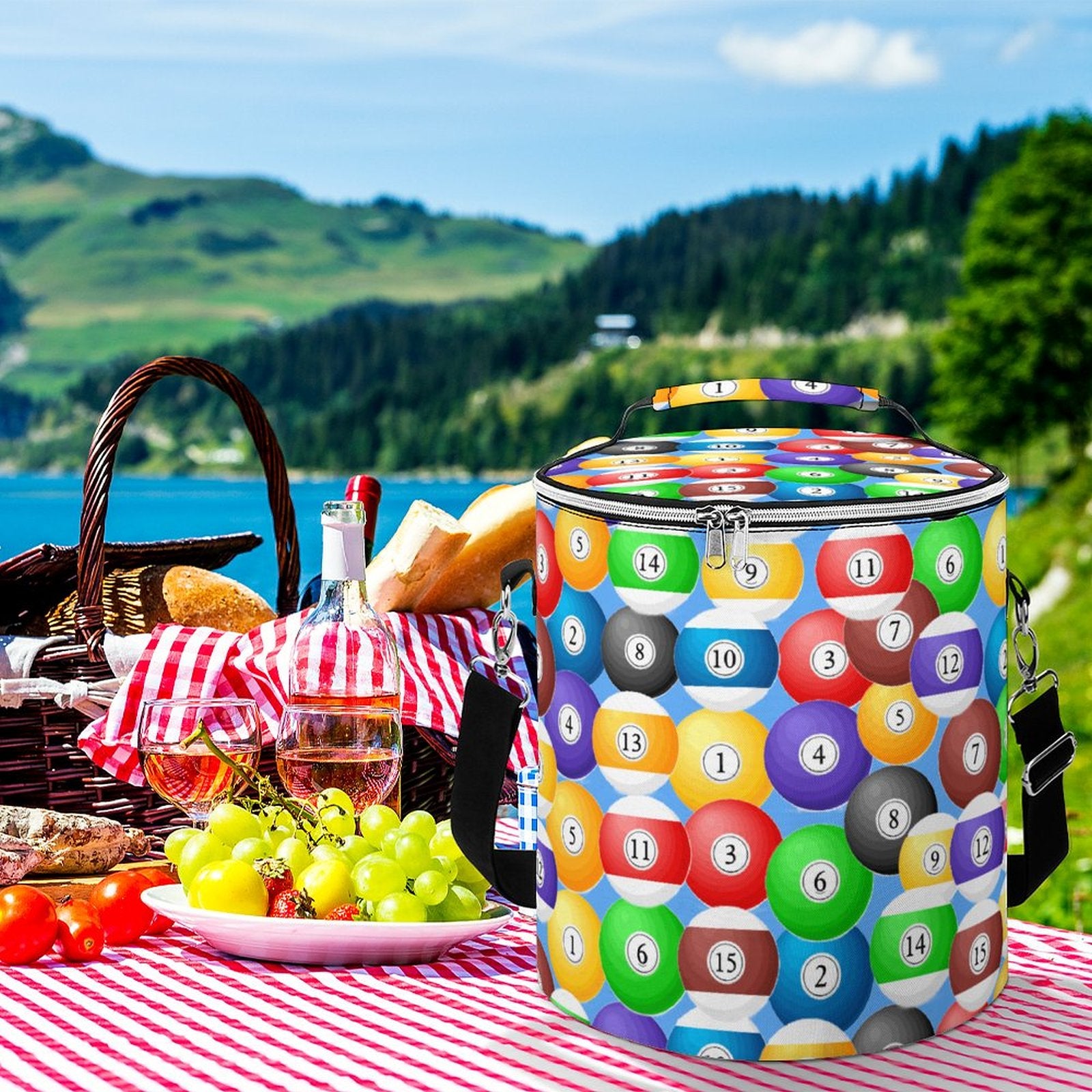 Round Collapsible Insulated Cooler Bag with Shoulder Strap(All-Over Printing)